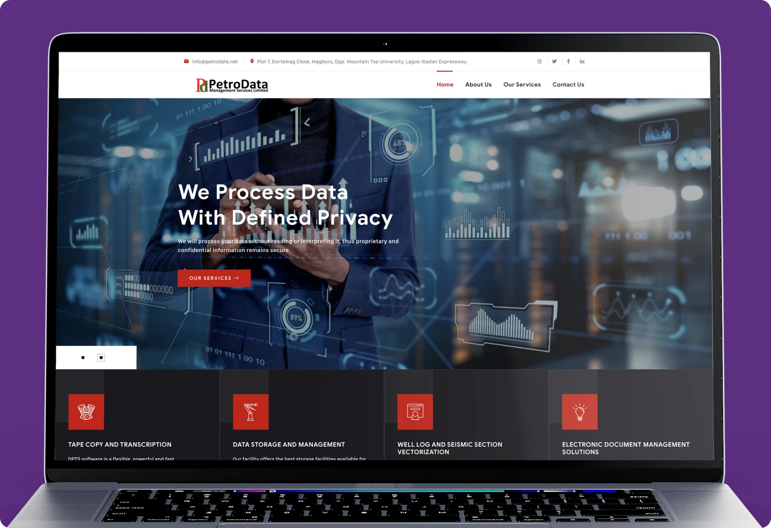 Mactavis worked with PetroData Management Services Ltd to create a modern, performance-driven website that reflects their mission to empower Nigeria’s oil, gas, and energy industries with cutting-edge data management and technology solutions.