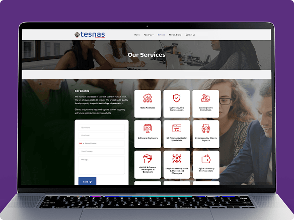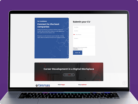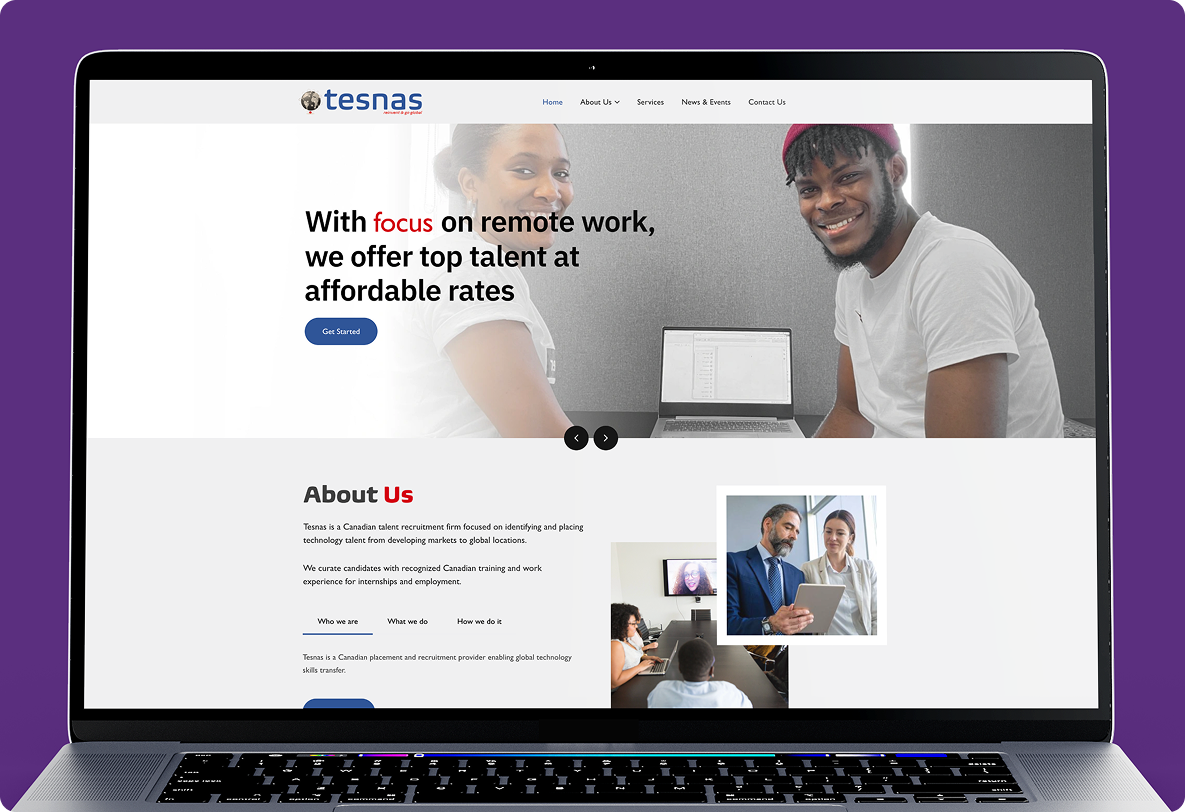 Mactavis Digital worked with Tesnas to design and develop a professional corporate website for a global talent recruitment firm. The platform was built to clearly communicate Tesnas' recruitment model, showcase its services, and connect international employers with skilled technology talent from developing markets.